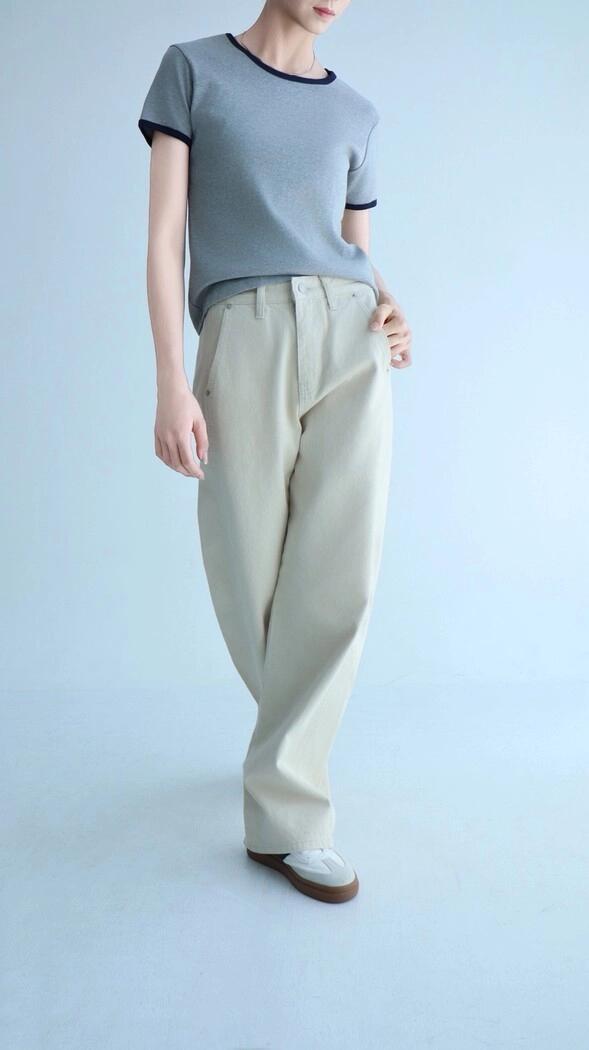 韓感休閒牛仔長褲【杏色】
