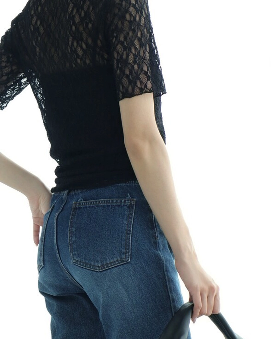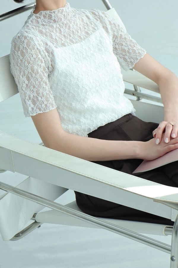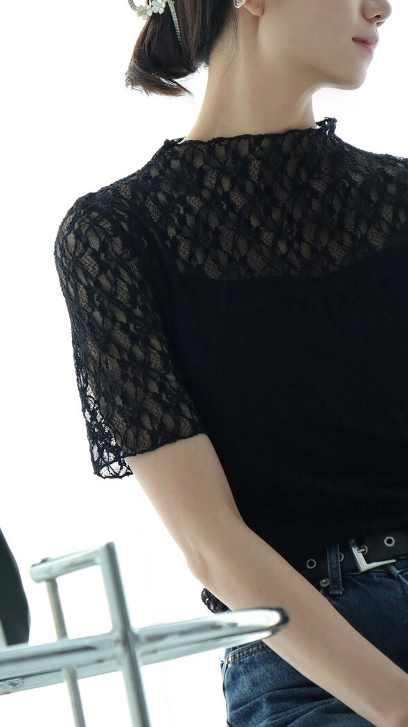 ◎微透膚蕾絲巧妙露膚的設計,
